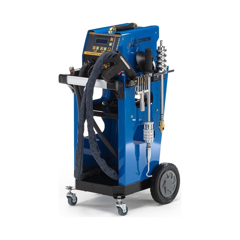 Споттер Great Wolf GW-60L 380 для контактной точечной сварки и выпрямления стальных поверхностей с микропроцессорным управлением и автоматическим вводом параметров сварки в зависимости от инструмента и толщины металлического листа. Понятный дисплей и кнопочная панель обеспечивают удобное использование аппарата. Применяется в кузовных цехах авторемонтных предприятий.