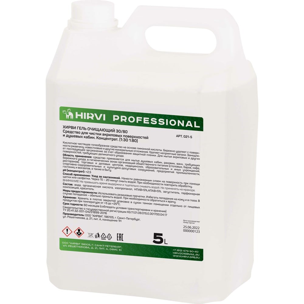 Средство для чистки акриловых поверхностей и душевых кабин HIRVI 5 л 317а713 - чистящее средство для мытья душевых кабин, акриловых ванн, хромированных, эмалированных, керамических и других поверхностей, требующих деликатного ухода. Бережно удаляет с поверхности ржавчину, известковые и другие минеральные отложения. Удаляет неприятные запахи. Образует защитную пленку, замедляя последующие загрязнения. Легко смывается, не оставляя разводов.