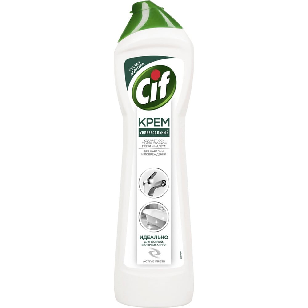 Чистящий крем для ванны Сиф Антиналет — ваш личный помощник по уборке в ванной комнате. Он знает, как удалить даже самые стойкие загрязнения, в том числе известковый и мыльный налет, а также ржавчину. То, что нужно, чтобы быстро привести в порядок сантехнику, стереть разводы на кафеле, вернуть блеск хромированным элементам и эмали. Его усиленная формула' с натуральными микрокристаллами легко удаляет 100% налета'' и других стойких загрязнений. Для эффективной и быстрой уборки ванной комнаты нанесите чистящий крем Сиф Антиналет на поверхность при помощи губки или прямо из флакона. Подождите 1-2 минуты: за это время усиленная формула крема растворит загрязнение, проникая в его структуру. Потрите поверхность абразивной стороной губки, чтобы активировать микрокристаллы в составе и удалить загрязнение без следа. Густая текстура крема равномерно распределяется и обеспечивает экономичный расход средства. Ваш комфорт во время уборки — важная часть нашей работы. Формула Сиф без резкого запаха безопасна не только для поверхностей, на которых используется, но и для человека. Мы знаем, как это важно для тех, кто заботится заботится о красоте дома и здоровье семьи. Сиф Актив Фреш позаботится о том, чтобы поверхности в вашей ванной комнате сияли чистотой. Используйте его для акрила, металла (в том числе хромированного), стекла, эмалей и керамики. Мягкий чистящий крем с натуральной чистящей основой''' не оставляет царапин даже на самых деликатных поверхностях.