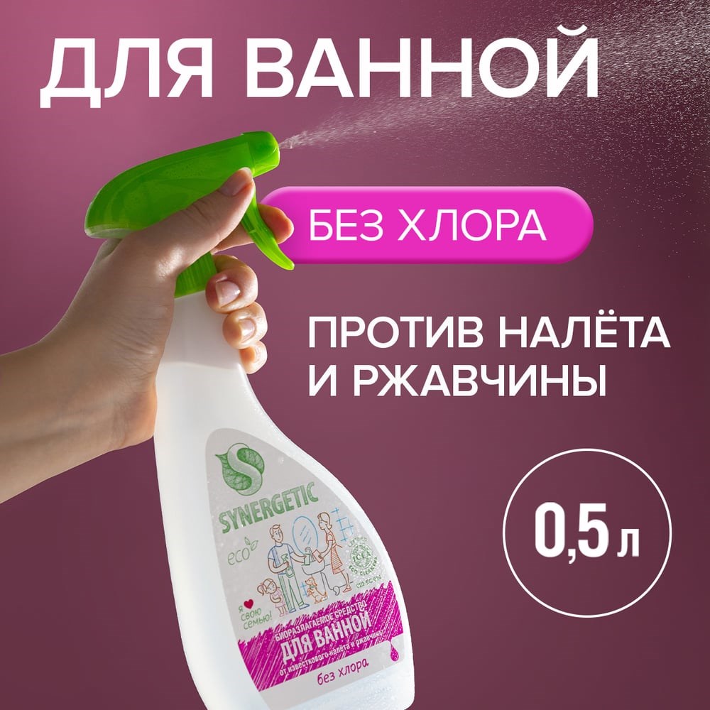 Средство для чистки сантехники, ванн, раковин, душевых кабин SYNERGETIC спрей, 500 мл 4613720438914 104052 – универсальное чистящее средство для ежедневной уборки поверхностей, устойчивых к кислотным моющим средствам, в ванных комнатах и санузлах: унитаза, раковины, ванны, душевой кабины, керамической плитки, акриловых, фаянсовых и эмалированных поверхностей. Комплекс натуральных кислот (лимонной, гликолевой и молочной) и Н-тензидов, полученных из растительного масла, устраняет известковый налёт, ржавчину, камень и минеральные загрязнения даже в холодной и жесткой воде. Средство с антибактериальным эффектом убивает микробы и бактерии, а также эффективно устраняет неприятные запахи. Гипоаллергенная отдушка с маслами сантала, бергамота, мяты и лимона оставляет свежий аромат. Международный сертификат ICEA подтверждает биоразлагаемость, безопасность и эффективность средства. Средство полностью смывается водой, безопасно для септических установок. Не содержит: хлор, фосфаты, оптические отбеливатели, SLS, SLES, агрессивные кислоты и ПАВ.