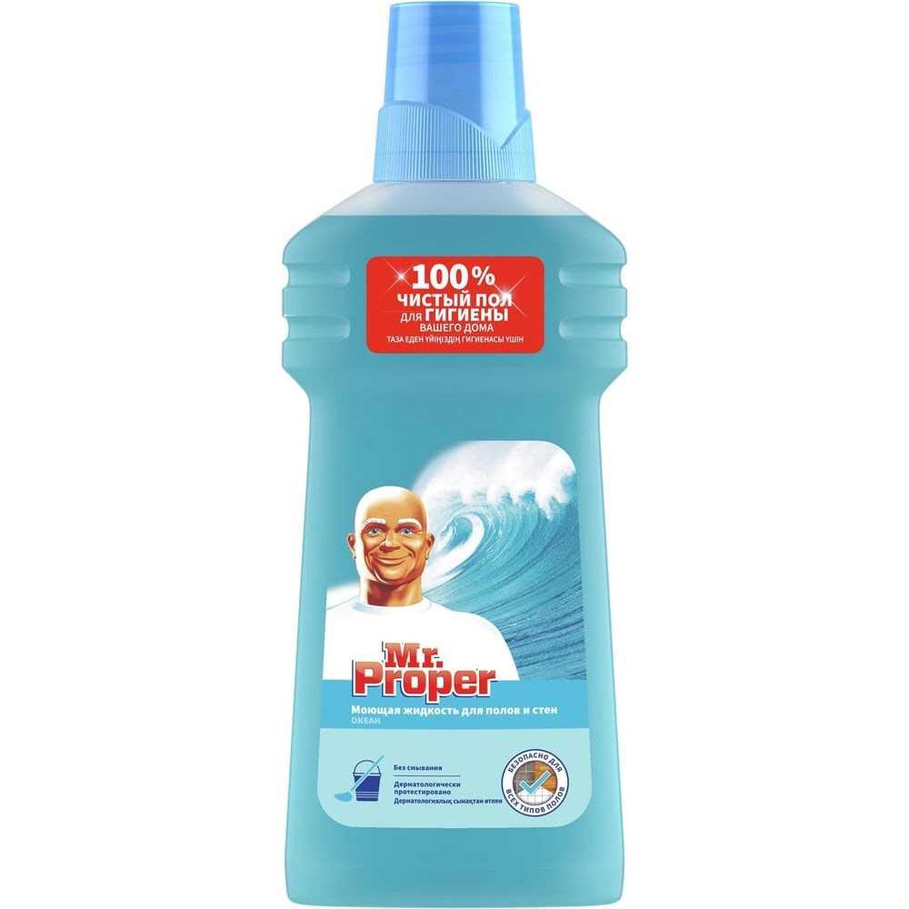 Универсальное моющее средство Mr. Proper с ароматом океанской свежести упростит ежедневную уборку в доме. Жидкость легко удаляет загрязнения с напольных покрытий, корпусной мебели и сантехники. Придает поверхностям блеск, устраняет неприятные запахи. Особенности средства для мытья полов и стен Mr. Proper: 1. Безопасный состав. Не содержит агрессивных очищающих компонентов, таких как хлор; 2. Удаляет до 100% пятен. Даже в холодной воде средство устраняет въевшиеся пятна на напольных покрытиях, стенах и корпусной мебели; 3. Не оставляет разводов. Средство не оставляет разводов даже на глянцевых поверхностях; 4. 100% чистый пол без смывания. Можно использовать в неразбавленном виде или растворять в воде; 5. Бережность к покрытиям. Cредство подходит для мытья всех типов полов: линолеума, лакированного паркета, ламината, плитки и других твердых поверхностей; 6. Дерматологически протестировано. Средство безопасно для уборки помещений, в которых живут дети и домашние животные; 7. Безопасно для септика. Продукт можно применять в домах, оборудованных септик-системами.Моющее средство Mr. Proper — универсальное и подходит для очищения любых твердых поверхностей в доме: полов, стен и корпусной мебели. Продукт можно использовать в чистом или разбавленном виде в пропорции 2 колпачка на 5 литров воды. Средство не нужно смывать, если вы не обрабатываете поверхности, которые соприкасаются с пищевыми продуктами.