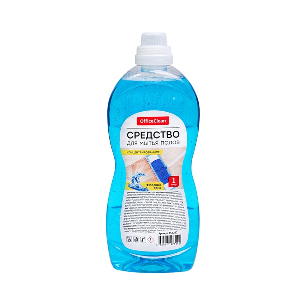Средство для мытья полов OfficeClean Морской бриз концентрат 1 л 257297 предназначено для чистки поверхностей. Специально подобранный состав компонентов эффективно очищает от комбинированных застарелых загрязнений. Нетоксично и биоразлагаемо, благодаря чему безопасно для людей и животных. Подходит для всех видов влагостойких поверхностей, что делает средство универсальным.