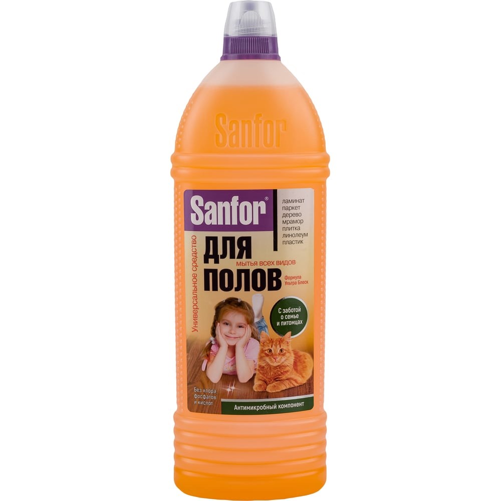 Средство для мытья полов SANFOR УЛЬТРА БЛЕСК Забота о доме 1000 мл 22157 представляет собой универсальное средство для мытья пола с формулой "Ультраблеск". Подходит для ухода за любыми полами по всему дому: ламинат, линолеум, паркет, дерево, керамическая плитка, мрамор, пластик, окрашенные поверхности. Эффективно очищает, не оставляет разводов, не требует смывания водой. Средство обладает антимикробным и антистатическим действием. Не содержит хлор. Придает поверхности сияющий блеск чистоты.