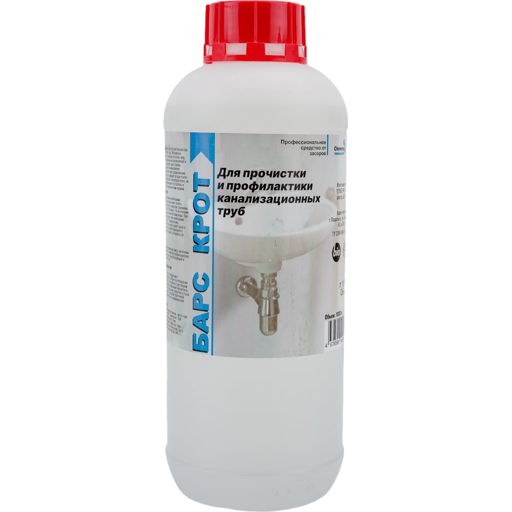 Средство для очистки канализационных стоков ХИМИТЭКС Барс Крот, 1 л БСКР052/1ШТ рекомендуется использовать для профилактики засоров и очистки канализационных стоков от масложировых отложений на предприятиях пищевой промышленности, общественного питания и жилых домах.