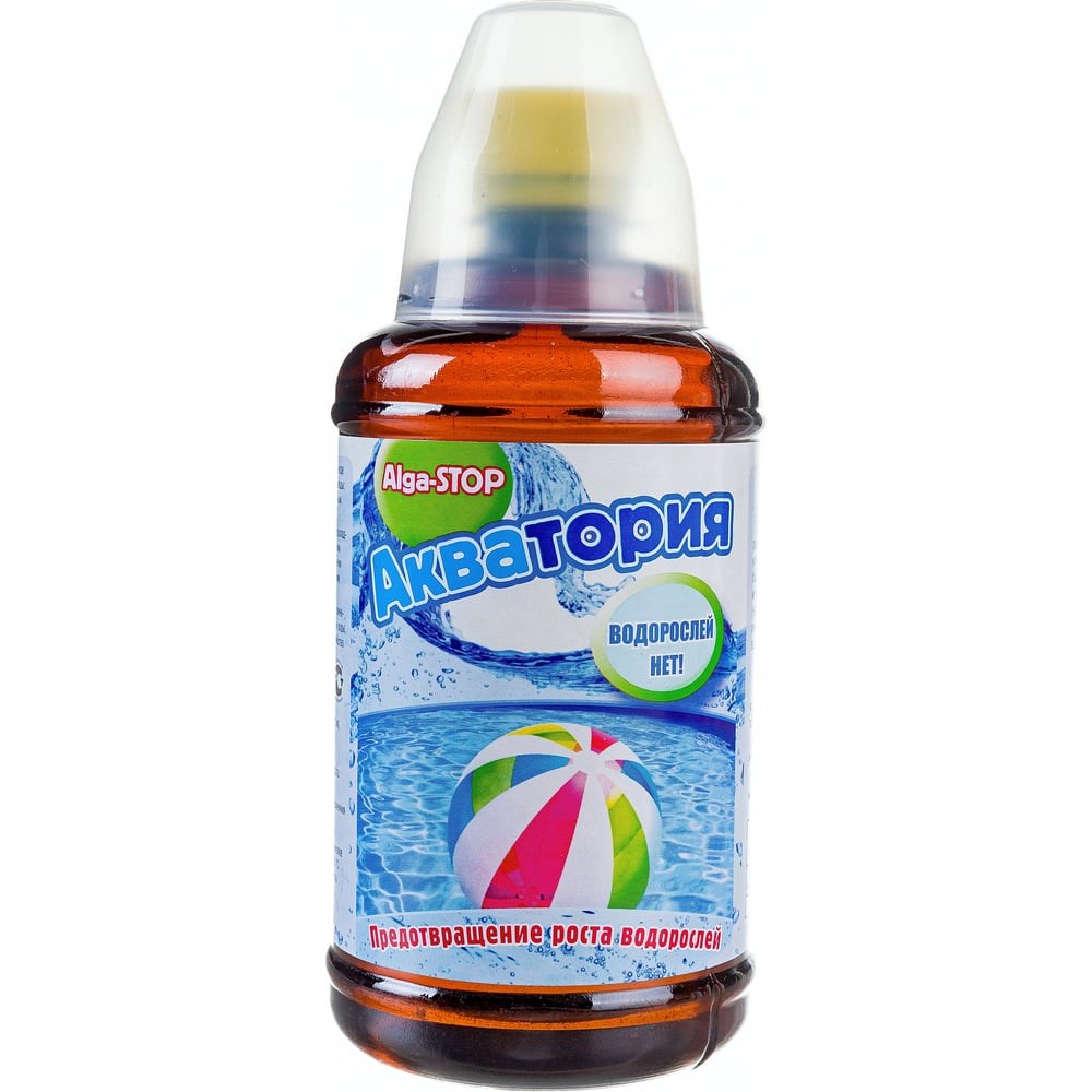 Средство для предотвращения роста водорослей Ваше Хозяйство Акватория Alga-Stop, 500 мл 4620015696157 помогает удалять вещества, обуславливающие мутность воды. В состав препарата входит четвертичные соединения аммония, отдушка и вода.