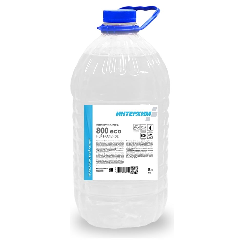 Средство для ручного мытья посуды ИНТЕРХИМ 800 eco НЕЙТР 5 л ПЭТ ih87155 - пенное средство для ручного мытья посуды, тары, столовых приборов, кухонного оборудования и поверхностей. Экономичное - малый расход средства благодаря высококонцентрированной формуле. Отсутствие агрессивных компонентов в составе. Высокая обезжиривающая способность, эффективное удаление неприятных запахов и отличная смываемость.