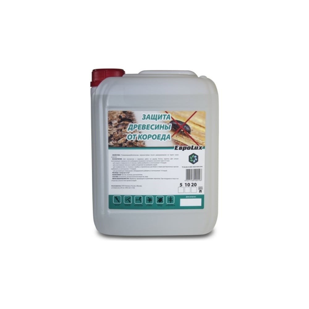 Средство для защиты древесины от короеда ХИМЭКСИ 5 л 7003 широко используют внутри и снаружи помещений. Состав подходит для обработки бетона и кирпича, профилактики поражения грибком и плесенью. Продукт обеспечивает долговременную защиту от насекомых-древоточцев, уничтожает их личинки.