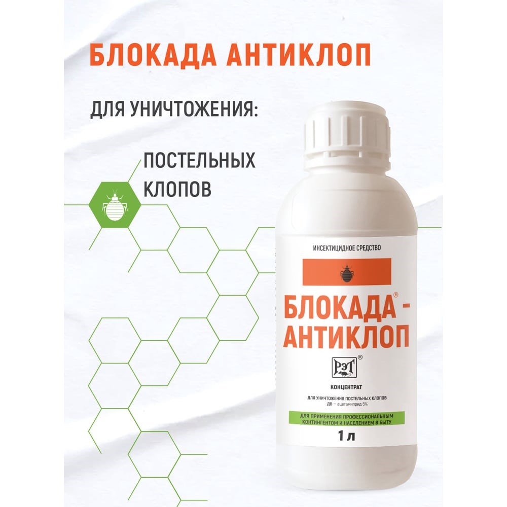 Средство «БЛОКАДА-АНТИКЛОП» рекомендовано для уничтожения постельных клопов профессиональным контингентом, занимающимся дезинфекционной деятельностью, и населением в быту в соответствии с Инструкцией и текстом Этикетки. Средство рекомендуется применять в помещениях на объектах различных категорий: в производственных и жилых помещениях, на объектах коммунально-бытового назначения (гостиницы, общежития, спорткомплексы), в подвальных помещениях, лечебных и детских учреждениях. Средство представляет собой жидкость светло-желтого цвета, содержит в качестве действующего вещества (ДВ) неоникотиноид ацетамиприд (5%) и функциональные добавки. Средство обладает острым инсектицидным действием в отношении постельных клопов. Продолжительность остаточного действия на поверхностях, особенно впитывающих, незначительна.