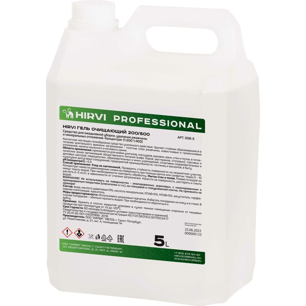 Средство усиленного действия для удаления ржавчины и минеральных отложений HIRVI 5,0 л 325а523 - усиленное средство для ухода за сантехникой. Удаляет стойкие запущенные загрязнения: толстые слои ржавчины, известковые и грязесолевые отложения, налеты мыльного и мочевого камня. Освежает поверхность, устраняя неприятные запахи. Легко смывается, не оставляя разводов. Применяется для кислостойких поверхностей: керамических, фаянсовых, каменных (гранит), полимерных, стеклянных и т.д.