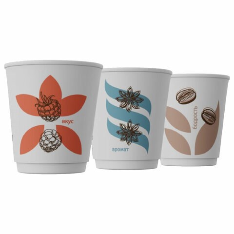 Стакан одноразовый бумажный 200/271 мл, D 80 мм, КОМПЛЕКТ 26 шт., двухслойный, холодное/горячее, "Гармония" ассорти, СКАНДИПАКК, -5115