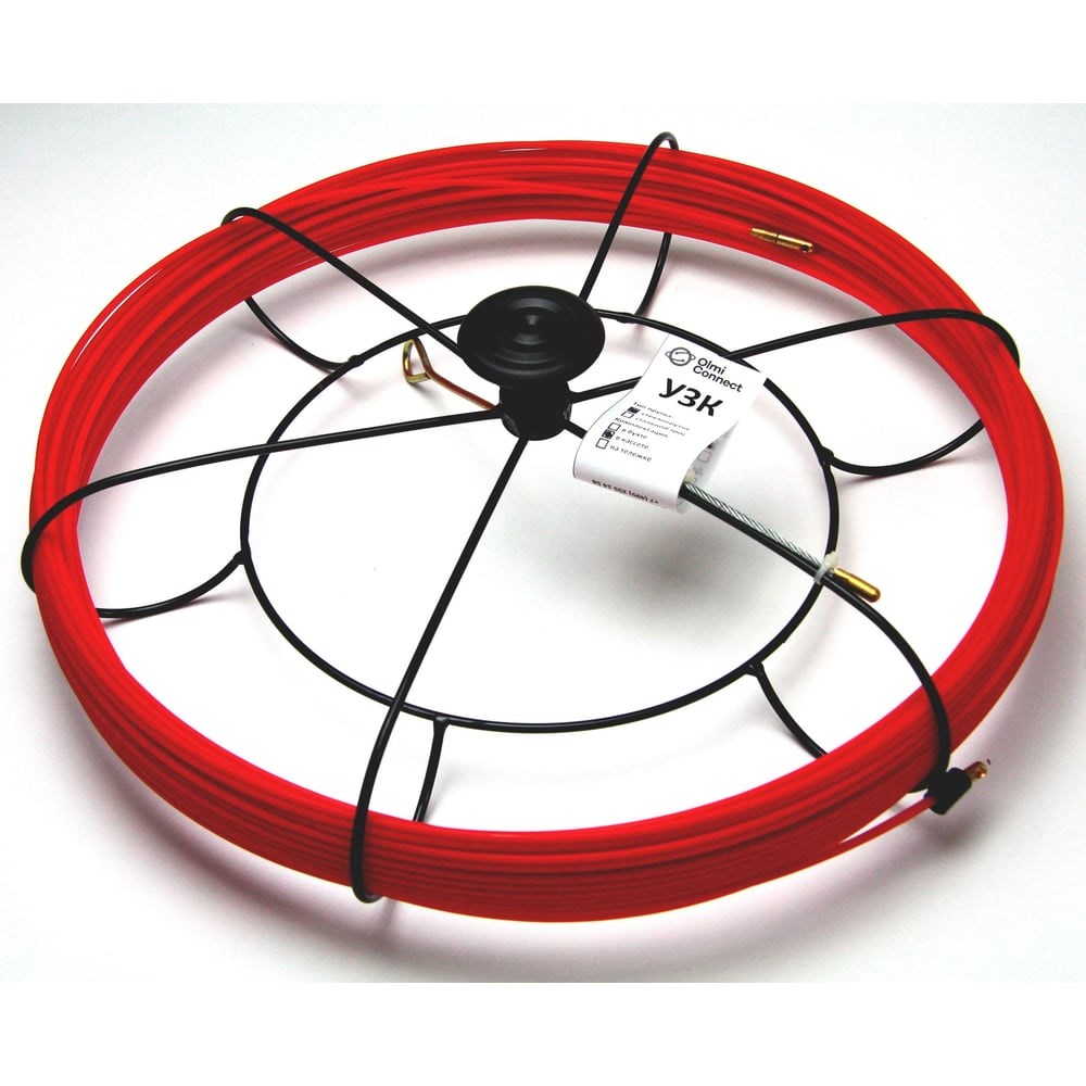 Стальная протяжка с нейлоновым покрытием OlmiOn d=3,5 мм L=10 м в кассете №1, красный CТ-К1-3,5/10 - cстальной трос более мягкий и прочный в отличие от стеклопрутка, отлично подойдет для прохождения углов свыше 90 градусов в ограниченном пространстве. Устройство представляет собой стальной пруток, который снаружи покрыт специальной защитной оболочкой, выполненной из износостойкого полиэтилена высокой плотности. С одной стороны УЗК находится наконечник из латуни, на который в каждом конкретном случае, в зависимости от условий протяжки, можно накрутить жёсткую или гибкую насадку (последняя наиболее удобна для использования в каналах уже наполненных большим количеством кабелей или с высоким числом изгибов), а с другой стороны жёстко закреплён наконечник (также из латуни) для фиксации кабеля, который необходимо протянуть. В комплекте с мини УЗК жёсткая и гибкая насадки. Минимальный радиус изгиба протяжки: 25 мм-30 мм. Общий диаметр прутка: 3,5 мм.
