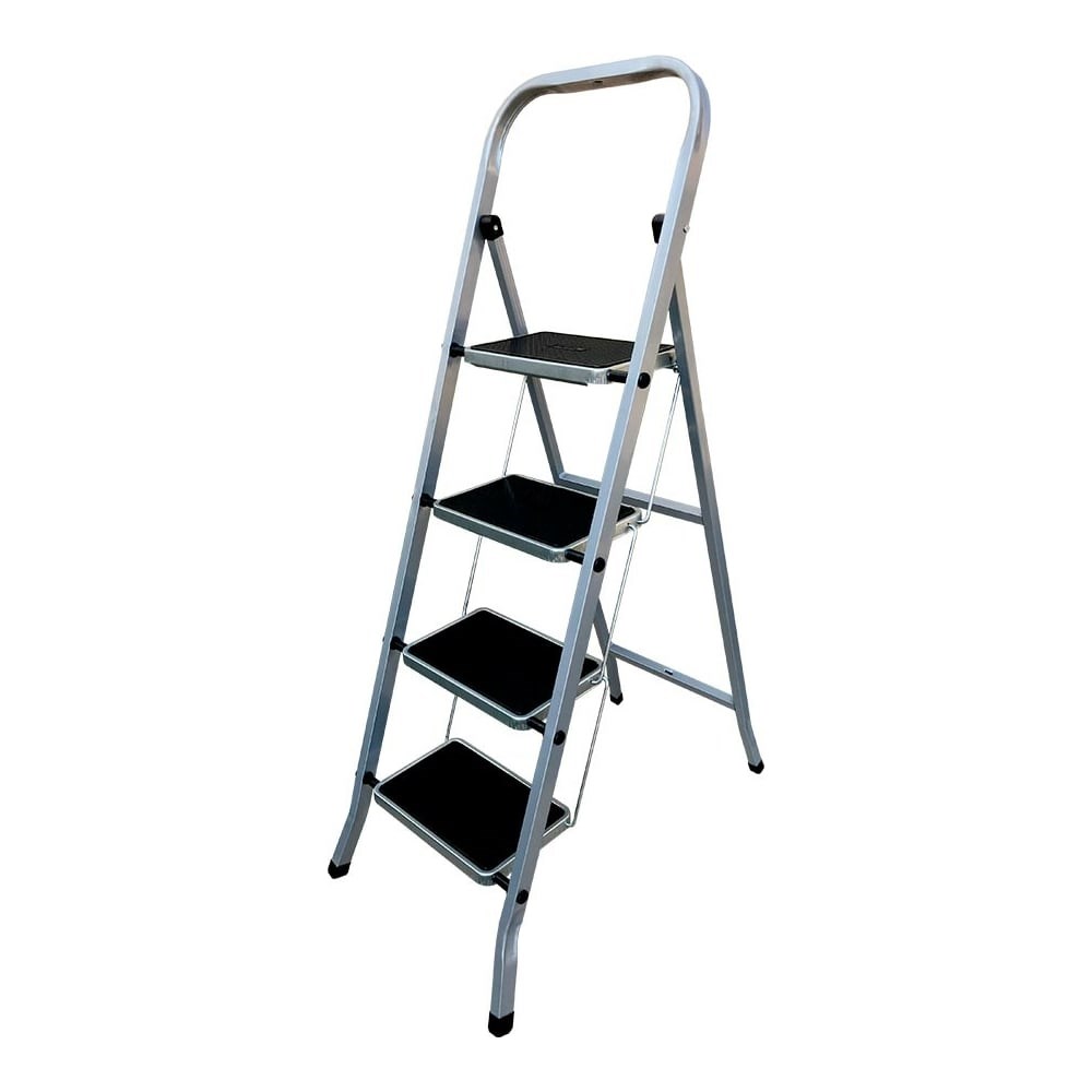 Стремянка предназначена для бытового использования. Подходит для строительных, монтажных работ внутри и снаружи помещений. Стальные ступени размером 200х300 мм имеют нескользящие пластиковые коврики.