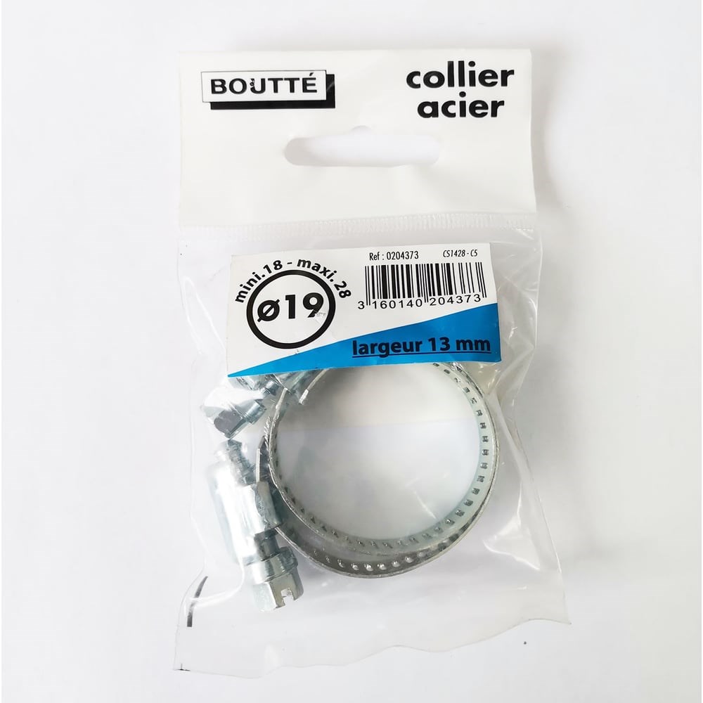 Стальной хомут Boutte 19 мм, ширина 14 мм, 2 шт. 0204373 - соединительный элемент, применяемый для крепления и герметизации соединения шлангов, патрубков и других жёстких и гибких трубопроводов.