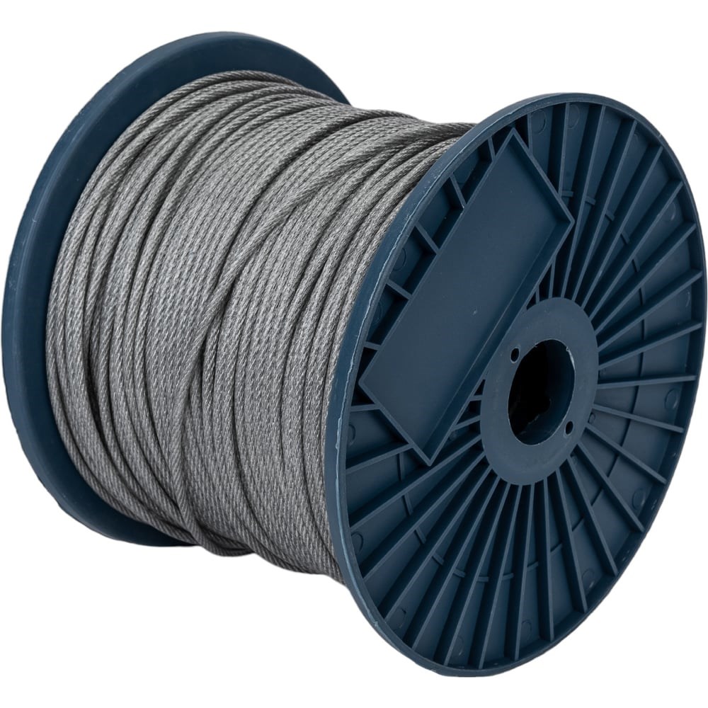 Стальной трос в ПВХ оплетке МЕТАЛЛСЕРВИС DIN 3055, 3/4, 200 м 1230955 имеет широкую область использования, как основной грузонесущий элемент в подъемных, строительных и других видах работ, благодаря высокой прочности. Он востребован в различных производствах и сферах народного хозяйства, а также применяется в быту. Благодаря ПВХ оплетке удается значительно повысить срок службы изделия, обеспечивая его герметичность и защиту от коррозии. Диаметр стального троса - 3 мм, вместе с оплеткой - 4 мм.