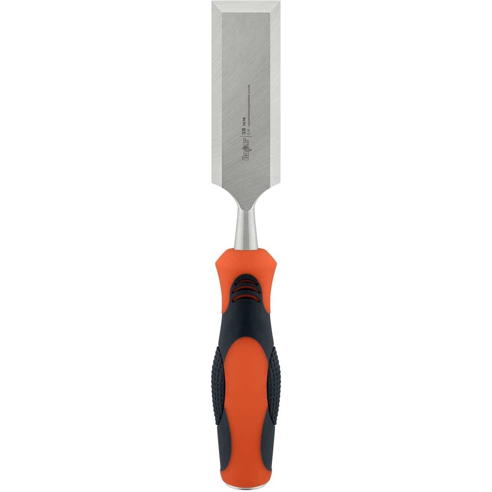 Стамеска (CRV, 3-х компонентная ручка, 38 мм) ВАРЯГ 85050 тов-149987 предназначается для точной обработки заготовок из различных пород дерева. Благодаря стальному затыльнику возможно выполнение ударных работ. Обрезиненная рукоятка эргономичной формы изготовлена из противоскользящих и маслобензостойких материалов.