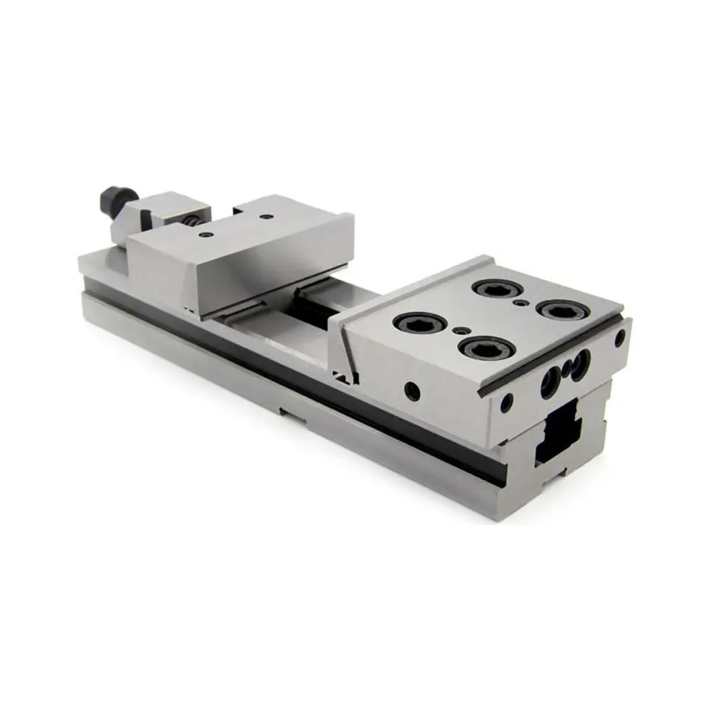 Тиски изготовлены из высококачественной легированной стали, с твёрдостью поверхностей 58-62 HRC. Модель имеет взаимозаменяемое основание. Подвижная и неподвижная губки обеспечивают быстрый зажим и простоту в работе. Данные тиски широко используются для оснащения обрабатывающих центров и других точных станков. Дополнительные характеристики: Параллельность: 0.005/100 мм; Перпендикулярность: 0.005 мм.