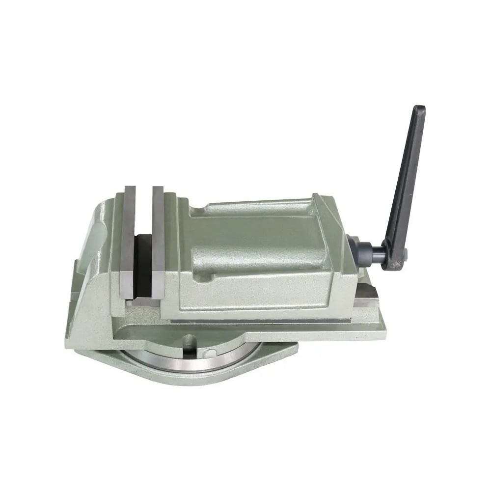 Станочные поворотные тиски предназначены для работы на фрезерных станках. Массивная и прочная конструкция с закрытым винтом защищает винт от попадания грязи. Упорный подшипник, установленный на валу, позволяет без затруднений создавать большое усилие зажима. Съемные губки отшлифованы и закалены, что обеспечивает их долговечность и сохранение точности при работе. Тиски изготовлены из высококачественного чугуна. Точность тисков: параллельность ≤0.025 мм/100 мм, перпендикулярность ≤0.025 мм.