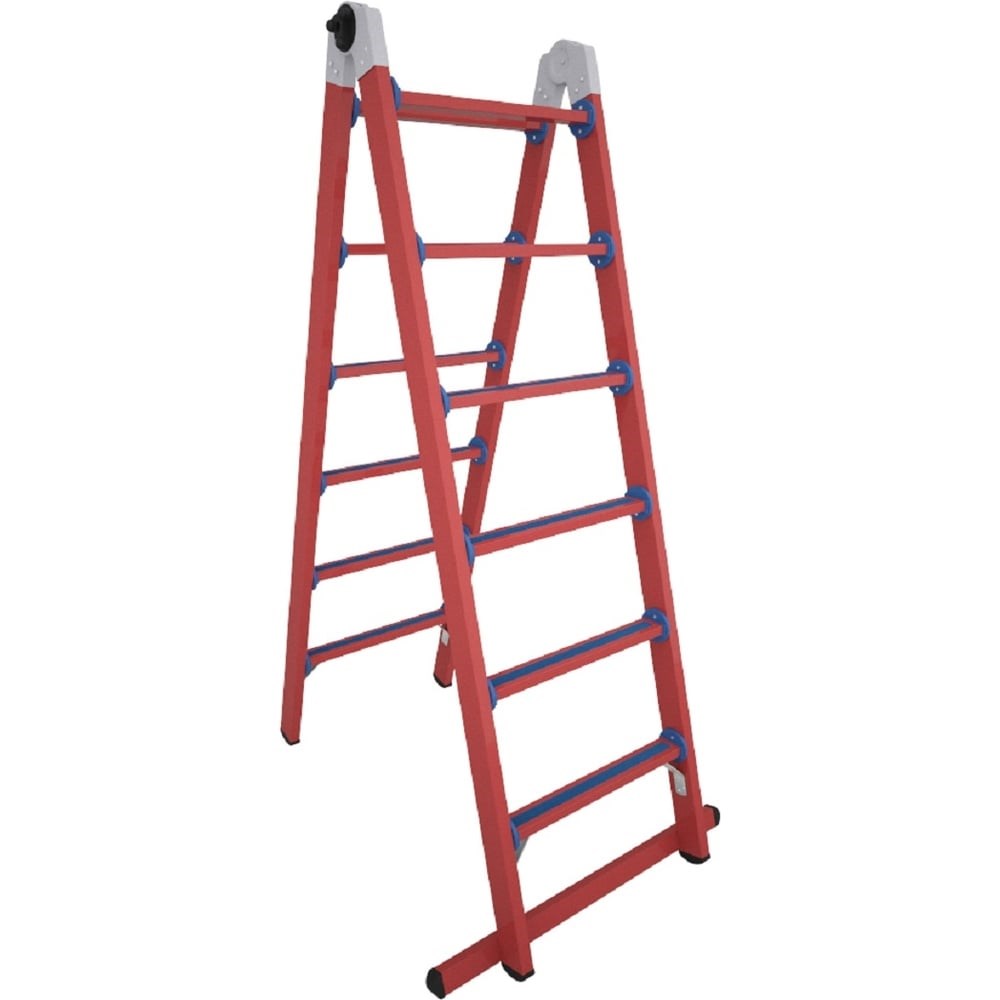 Стремянка применяется для ремонтных и монтажных работ на различных предприятиях. Выполнена из стеклопластика, который отличается небольшим весом, устойчивостью к образованию коррозии, высокой прочностью, а также диэлектрическими свойствами, благодаря чему лестница подходит для работ с электрооборудованием. Компактность. Складная конструкция не занимает много места при хранении или транспортировке. Противоскользящее покрытие ступеней обеспечивает безопасность работы.
