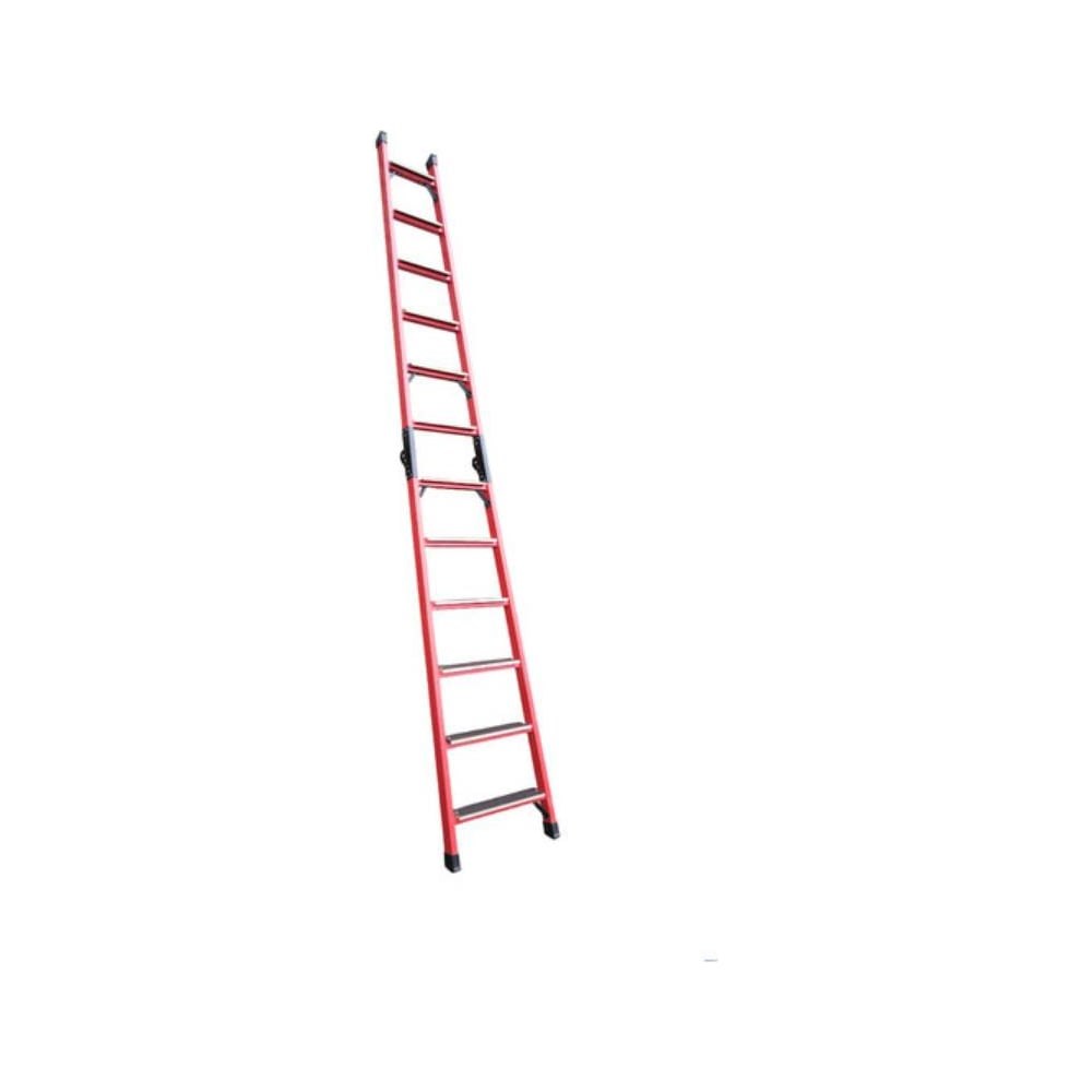Лестница стеклопластиковая ЛСПТС-2х2,5 приставная, трансформируемая в стремянку. ЛСПТС – диэлектрическая лестница, состоящая из двух секций, соединенных между собой шарнирными механизмами. Шарнирный механизм позволяет фиксировать различный угол между секциями, это позволяет использовать лестницу- трансформер как лестницу приставную так и лестницу-стремянку. Для изготовления тетивы используется диэлектрический стекловолоконный профиль прямоугольного сечения. На нижних концах тетивы – противоскользящие эластополимерные опоры. Ступени изготовлены из профиля 36х26 мм с противоскользящими ребрами.