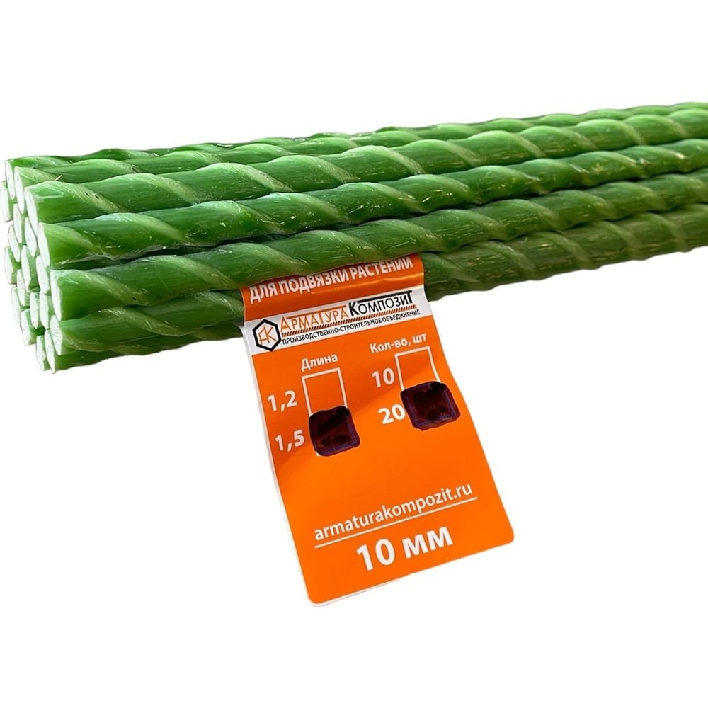 Стеклопластиковая садовая опора Арматура Композит 10 мм, 20 штук по 1.2 м 4660228920434 предназначена для подвязки садовых растений. Опора защищает стебли растений от поломки при сильном ветре или от тяжести плодов. С их помощью укрепляют травянистые виды культур, у которых образуются крупные цветки и плоды. Согласно правилам комфортного роста и развития растений на каждый саженец или выращиваемый кустик устанавливают индивидуальный колышек. Чтобы правильно привязать саженец любой культуры, нужно использовать веревку либо канатик. Ею привязывают главный стебель к колышку, концы скрещивают либо завязывают восьмеркой.