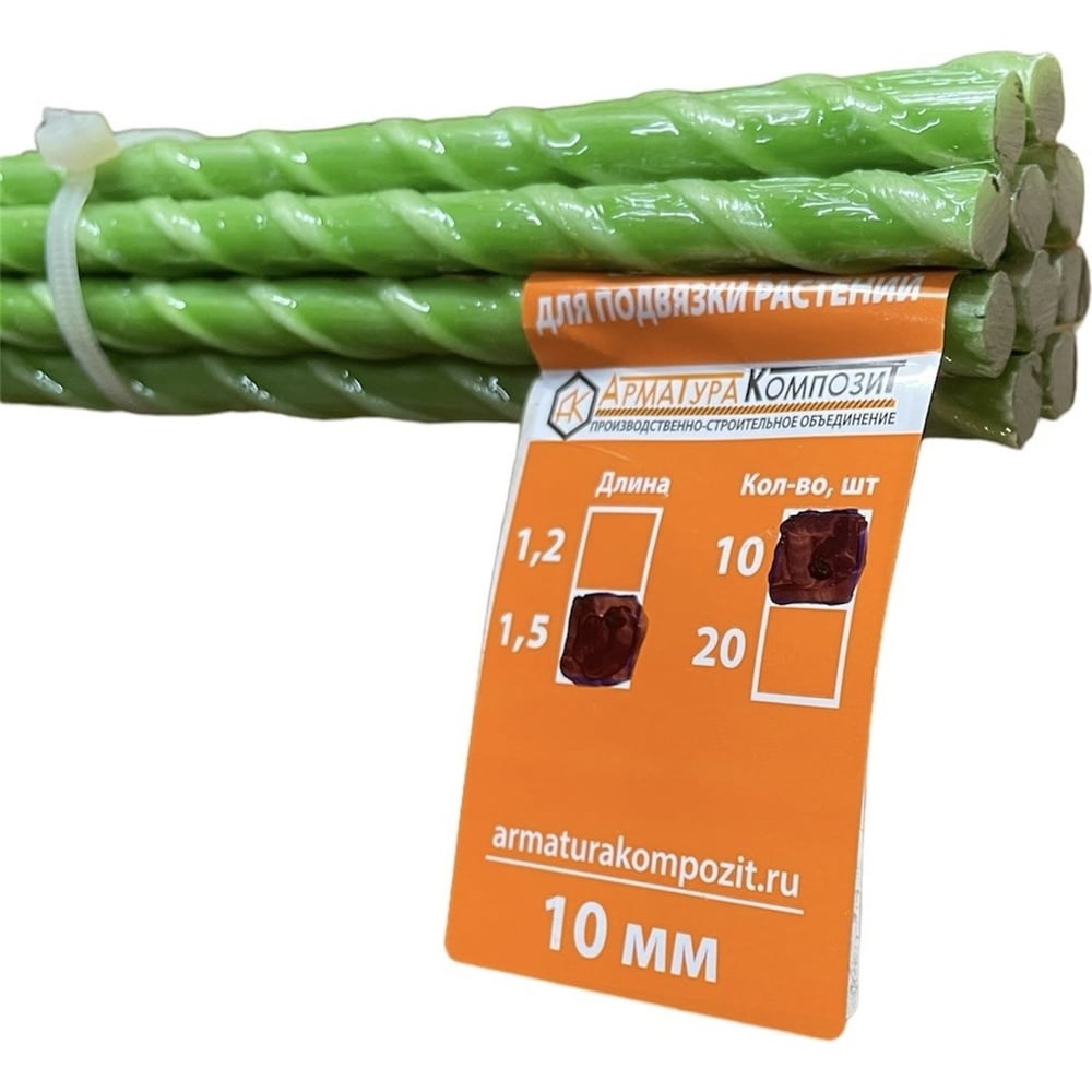 Стеклопластиковая садовая опора Арматура Композит 10 мм, 20 шт. по 1.5 м 4660228920458 предназначена для подвязки садовых растений. Опора защищает стебли растений от поломки при сильном ветре или от тяжести плодов. С их помощью укрепляют травянистые виды культур, у которых образуются крупные цветки и плоды. Согласно правилам комфортного роста и развития растений на каждый саженец или выращиваемый кустик устанавливают индивидуальный колышек. Чтобы правильно привязать саженец любой культуры, нужно использовать веревку либо канатик. Ею привязывают главный стебель к колышку, концы скрещивают либо завязывают восьмеркой.