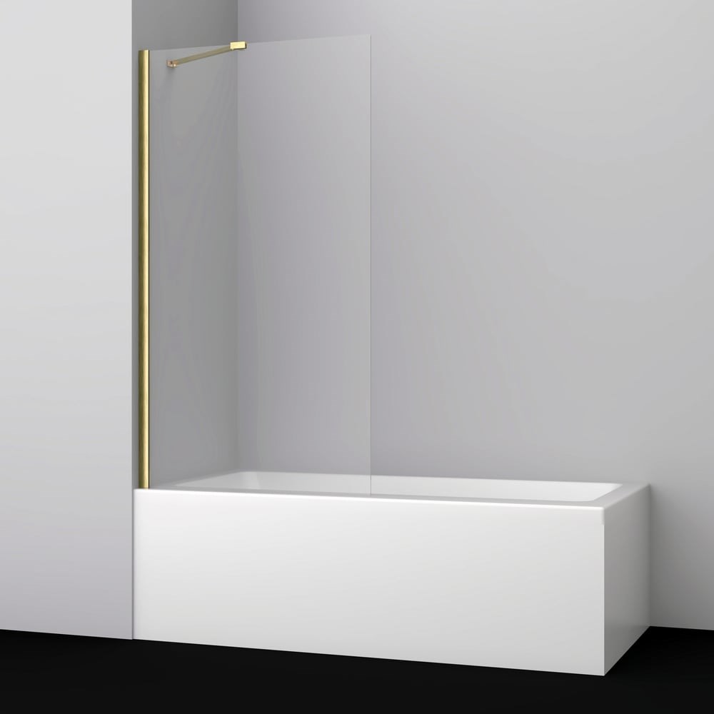 Характеристики Закаленное прозрачное стекло 6 мм Покрытие стекла WasserSchutz Анодированный алюминиевый профиль 34 мм Регулирующий профиль до 12 мм Возможность правой и левой установки Одностворчатая Цвет профиля: матовое золото Силиконовые уплотнители