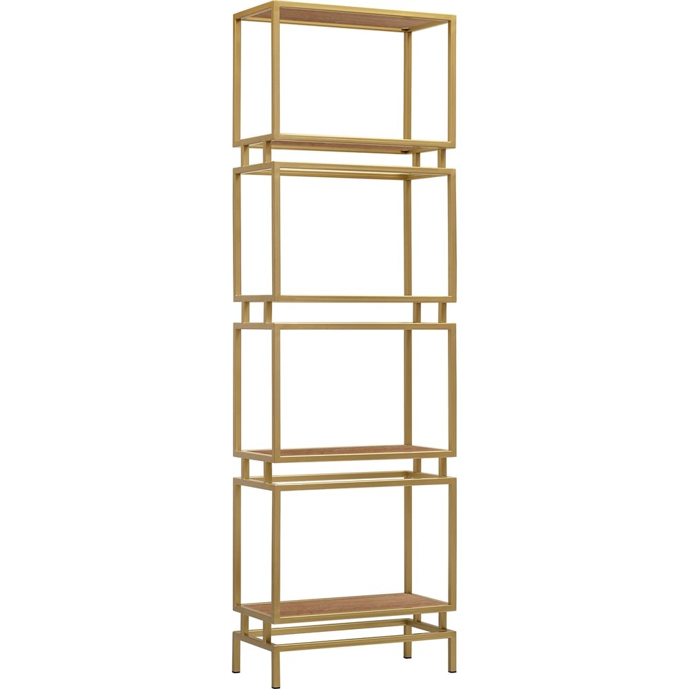 Золотой металлический стеллаж BRICK с прямоугольными нишами – лаконичное решение для современного интерьера. Компактный стеллаж удобно разместить в гостиной, столовой, спальне и детской комнате. Утонченное сочетание золотого каркаса и полок из ЛДСП в цвете Робиния привлекает внимание и создает элегантный дизайн. Открытые полки рекомендуем использовать для хранения декора, бытовой техники, игрушек, цветов и книг. Стеллаж BRICK популярен у дизайнеров для создания интерьеров в стиле лофт, минимализм и сканди. Каркас стеллажа изготовлен из стальной профильной трубы 20х20 с полимерным покрытием. Полки выполнены из ЛДСП толщиной 8 мм, выдерживают нагрузку до 10 кг. Напольный стеллаж не требует дополнительного крепления к стене, устойчив за счет собственного веса. Стеллаж спроектирован и собран на собственном производстве, где внимательно следят за качеством материалов и готовых изделий. Металлический стеллаж подойдет для квартиры, загородного дома, салона и студии. Стеллаж доставляем в собранном виде в надежной упаковке. Коллекция стеллажей BRICK отлично сочетается с банкетками OMEGA и консолями TORI. Характеристики стеллажа BRICK: • размеры (длина х ширина х высота): 600x300х1960 мм, • вес – 21,3 кг, • количество полок – 5, • высота ниш: 360 мм, • толщина полок – 8 мм, • максимальная нагрузка на полку – 10 кг.