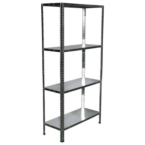 Стеллаж изготовлен из оцинкованной стали, что позволяет его использовать в помещениях с повышенной влажностью.