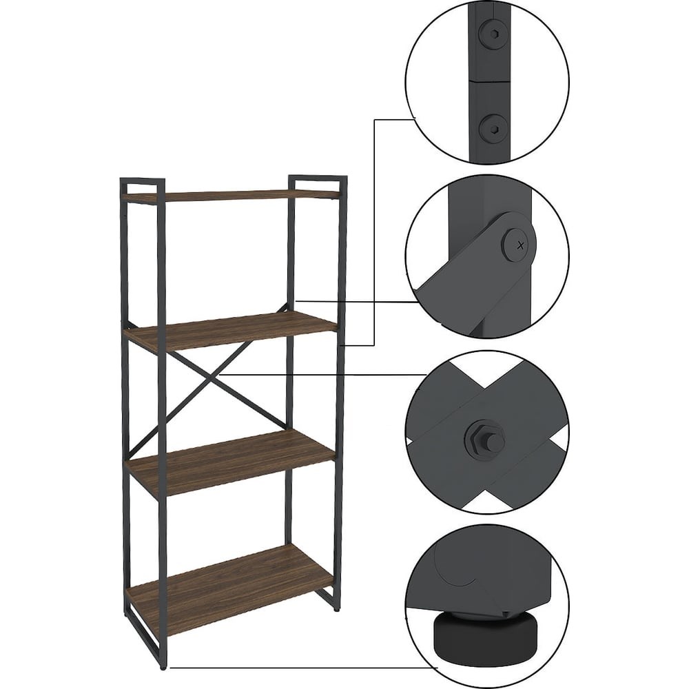 Стеллаж Металл-Завод GUTTA 151x69x34x4 коричневый/черный GS15169344B2 предназначен для организации мест хранения в офисе. Подходит для хранения книг, папок и различных вещей. Хорошо вписывается в интерьер кабинета и других помещений. Каркас изготовлен из стальной профильной трубы. Полки стеллажа изготовлены из ЛДСП. Максимальная равномерно распределенная нагрузка на каждую полку - 15 кг.Допускается влажная уборка поверхностей с применением моющих средств. Покрытие деталей устойчиво к перепадам температур и влаги. Допускается к эксплуатации в температурных режимах окружающего воздуха от -30 С до +40 С при относительной влажности воздуха 45-80%. Используемое покрытие не выделяет запахов, не имеет инородных включений. Порошковая краска, используемая для создания полимерного покрытия, имеет сертификат соответствия.