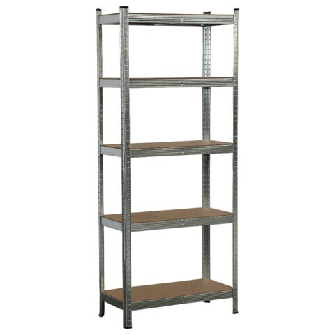 Стеллаж металлический BOOMHOUSE (БУМХАУС) безболтовой, 1800x750x350 мм, 5 полок МДФ, нагрузка на стеллаж до 875 кг, серебристый, 291411