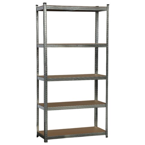 Стеллаж металлический BOOMHOUSE (БУМХАУС) безболтовой, 2000x1000x400 мм, 5 полок МДФ, нагрузка на стеллаж до 875 кг, серебристый, 291414