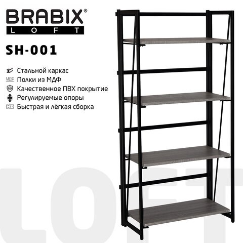 Лёгкая сборка, функциональность, лаконичный современный дизайн и компактный размер по разумной цене - это безусловные преимущества стеллажа BRABIX LOFT SH-001.
