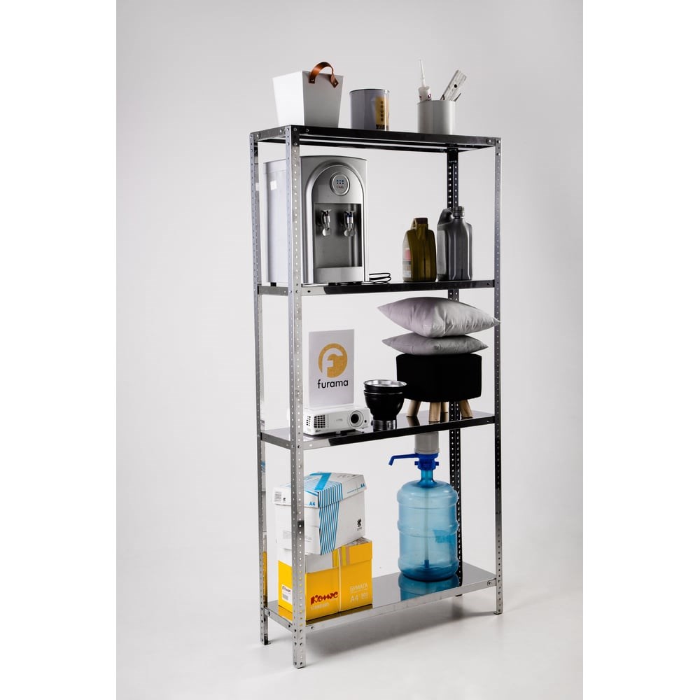 Стеллаж ООО ФУРАМА СН 2000х1000х400 мм 4 полки СН201040-4 поставляется в разобранном виде. предназначен для хранения кухонного инвентаря и сухих пищевых продуктов. Модель включает в себя дополнительные углы, которые увеличивают жесткость конструкции. Уголки жесткости (16 шт.) крепятся только на верхнюю и нижнюю полку по 8 шт., полки между ними крепятся на болты и гайки. Можно менять положение полок с шагом в 25 мм. Каждая стойка в 1000 мм (при создании стойки 2 метра) монтируется соединителем с помощью болтов и гаек. Стеллаж выполнен из нержавеющей стали марки AISI430. Нагрузка на стеллаж: до 500 кг. Нагрузка на полку: до 100 кг. Полки выполнены из металла толщиной 0,7 мм без ребра жесткости. Подпятники не регулируемые. Данную модель возможно доукомплектовать полками арт. СН-П10.4.