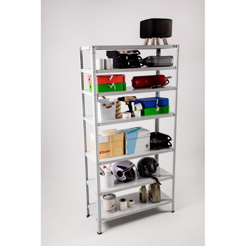 Стеллаж ООО ФУРАМА СТФ 2000х1000х300 мм 7 полок СТФ201030-7 поставляется в разобранном виде. Модель включает в себя дополнительные углы, которые увеличивают жесткость конструкции. Уголки жесткости (16 шт.) крепятся только на верхнюю и нижнюю полку по 8 шт., полки между ними крепятся на болты и гайки. Можно менять положение полок с шагом в 25 мм. Каждая стойка в 1000 мм (при создании стойки 2 метра) монтируется соединителем с помощью болтов и гаек. Нагрузка на стеллаж: до 750 кг. Нагрузка на полку: до 100 кг. Полки оснащены ребром жесткости. Подпятники не регулируемые. К данной модели подходят полки арт. СТФ-П10.3.