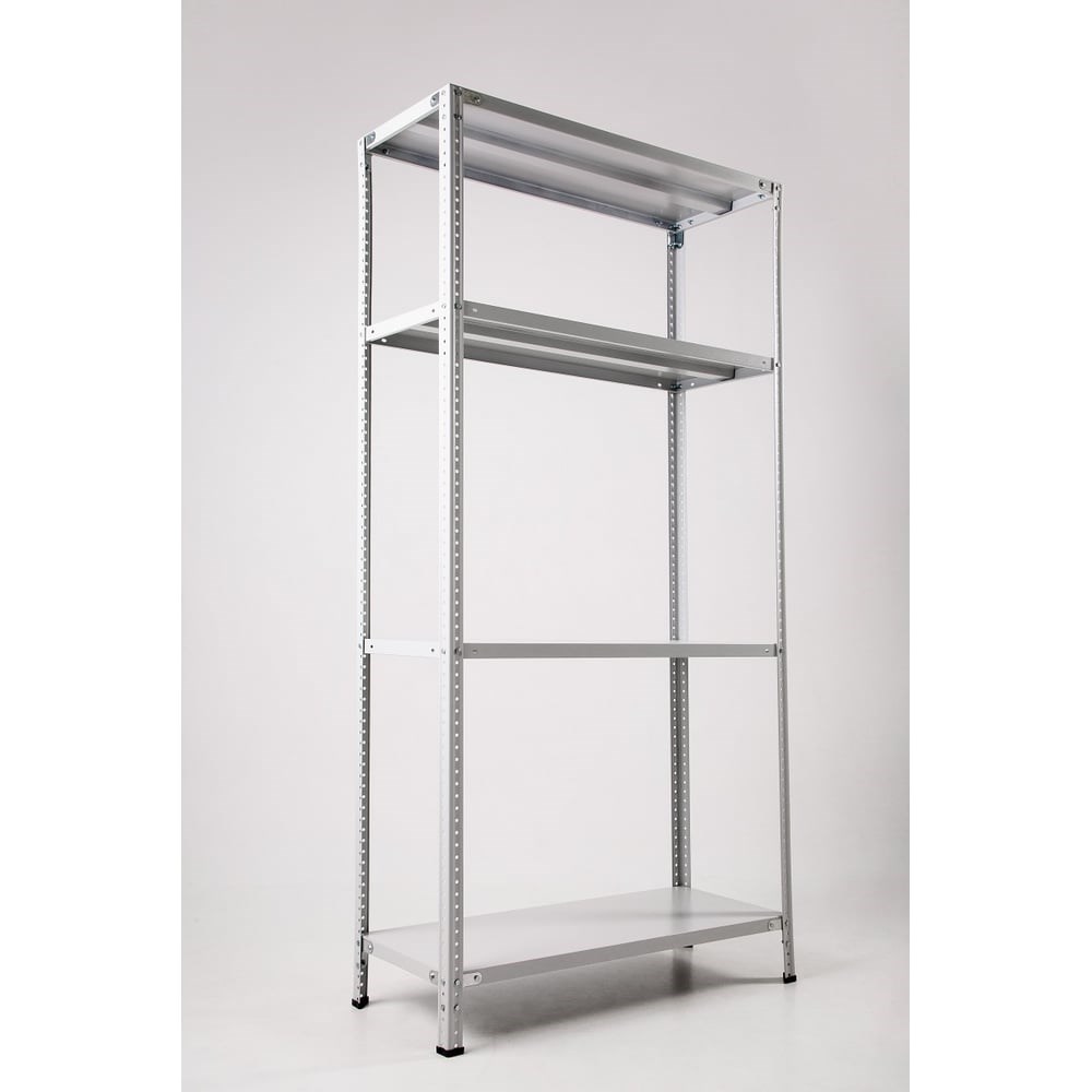 Стеллаж ООО ФУРАМА СТФЛ 1500х1000х400 мм 4 полки СТФЛ151040-4 поставляется в разобранном виде. Модель включает в себя дополнительные углы, которые увеличивают жесткость конструкции. Уголки жесткости (16 шт.) крепятся только на верхнюю и нижнюю полку по 8 шт., полки между ними крепятся на болты и гайки. Можно менять положение полок с шагом в 25 мм. Стойка в 1000 мм и 500 мм (при создании стойки 1,5 метра) монтируется соединителем с помощью болтов и гаек. Нагрузка на стеллаж: до 500 кг. Нагрузка на полку: до 100 кг. Полки оснащены ребром жесткости. Подпятники не регулируемые. К данной модели подходят полки арт. СТФ-П10.4.