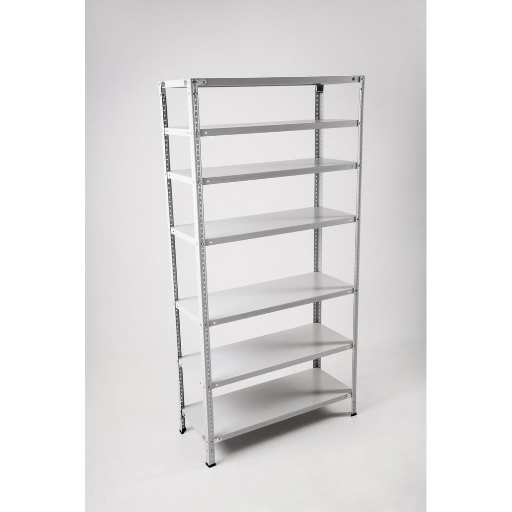 Стеллаж ООО ФУРАМА СТФ 2000х1000х700 мм 7 полок СТФ201070-7 поставляется в разобранном виде. Модель включает в себя дополнительные углы, которые увеличивают жесткость конструкции. Уголки жесткости (16 шт.) крепятся только на верхнюю и нижнюю полку по 8 шт., полки между ними крепятся на болты и гайки. Можно менять положение полок с шагом в 25 мм. Каждая стойка в 1000 мм (при создании стойки 2 метра) монтируется соединителем с помощью болтов и гаек. Нагрузка на стеллаж: до 750 кг. Нагрузка на полку: до 100 кг. Полки оснащены ребром жесткости. Подпятники не регулируемые. К данной модели подходят полки арт. СТФ-П10.7.