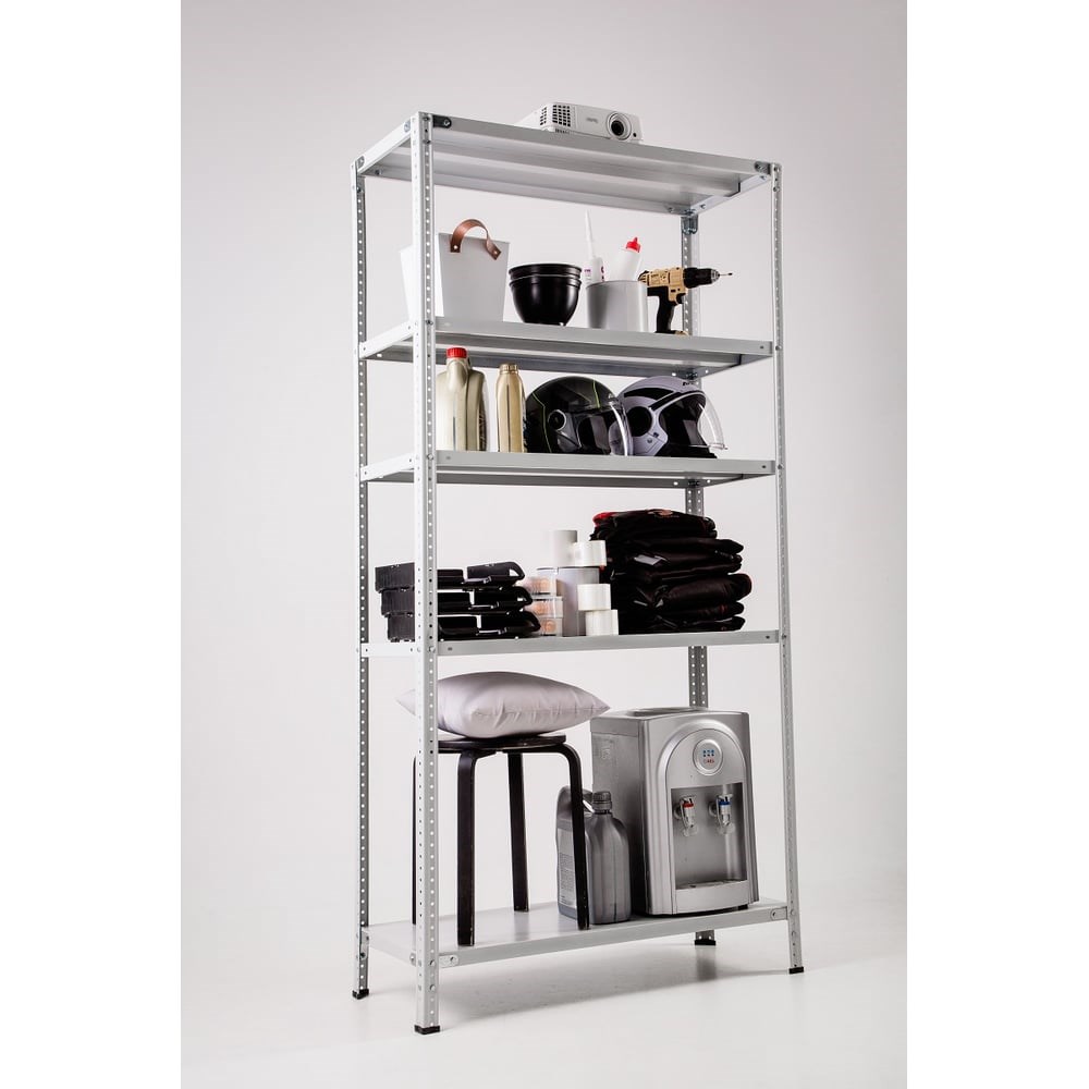 Стеллаж ООО ФУРАМА СТФЛ 1800х1000х600 мм 5 полок СТФЛ181060-5 поставляется в разобранном виде. Модель включает в себя дополнительные углы, которые увеличивают жесткость конструкции. Уголки жесткости (16 шт.) крепятся только на верхнюю и нижнюю полку по 8 шт., полки между ними крепятся на болты и гайки. Можно менять положение полок с шагом в 25 мм. Каждая стойка в 1000 мм и 800 мм (при создании стойки 1,8 метра) монтируется соединителем с помощью болтов и гаек. Нагрузка на стеллаж: до 500 кг. Нагрузка на полку: до 100 кг. Полки оснащены ребром жесткости. Подпятники не регулируемые. К данной модели подходят полки арт. СТФ-П10.6.
