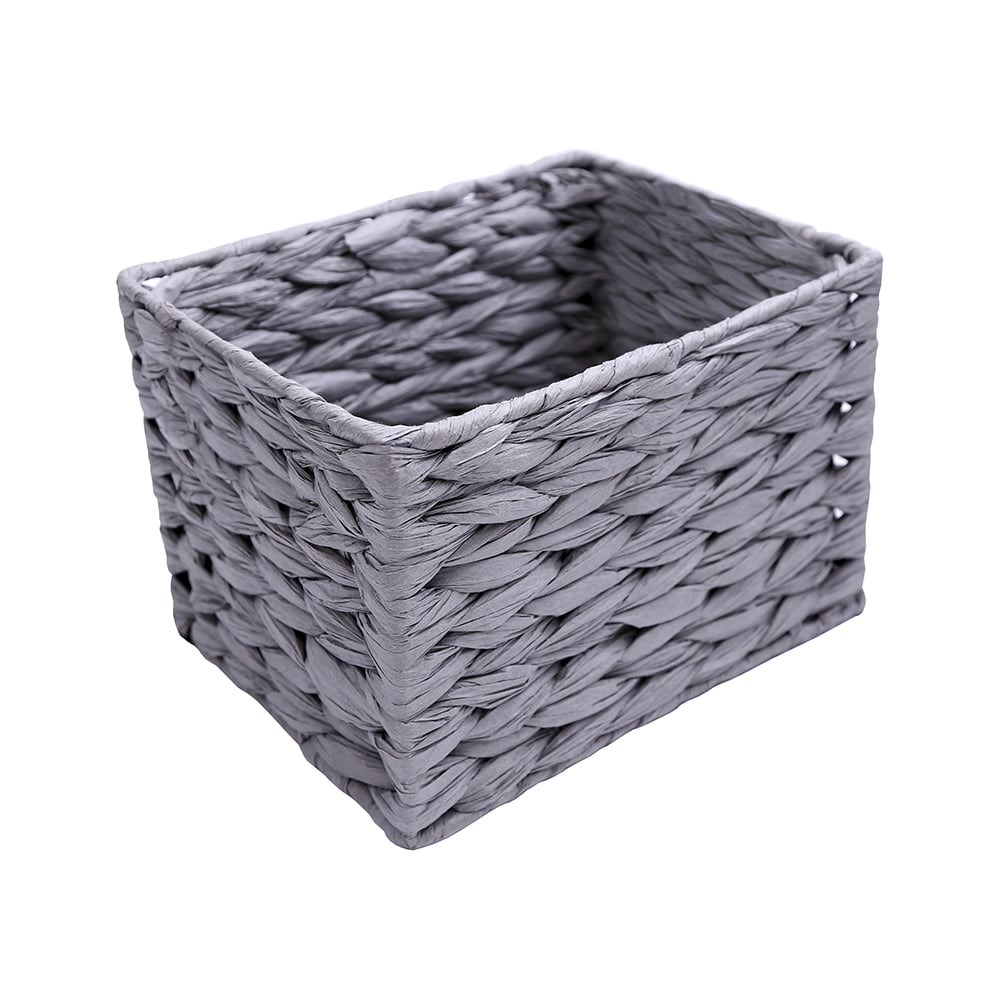 Плетеная стеллажная корзина станет прекрасным дополнением интерьера и отличным функциональным решением для хранения вещей. Корзина сплетена из скрученной в жгуты бумаги, что визуально похоже на плетение из водного гиацинта. Материал изготовления корзины: бумага, металлический каркас.