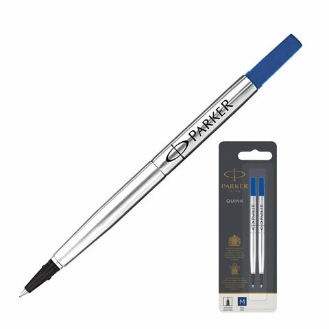 Стержень подходит для ручек-роллеров PARKER. Длина металлического стержня составляет 116 мм. Диаметр пишущего узла 0,7 мм создает линию письма, равную 0,7 мм. Цвет чернил – синий. Комплект из 2 штук в блистере.
