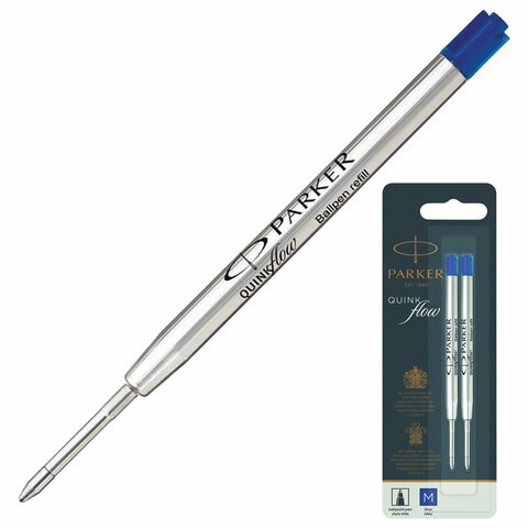 Стержень шариковый PARKER "Quinkflow", КОМПЛЕКТ 2 шт., металлический, 98 мм, узел 1 мм, блистер, синий, 1950373