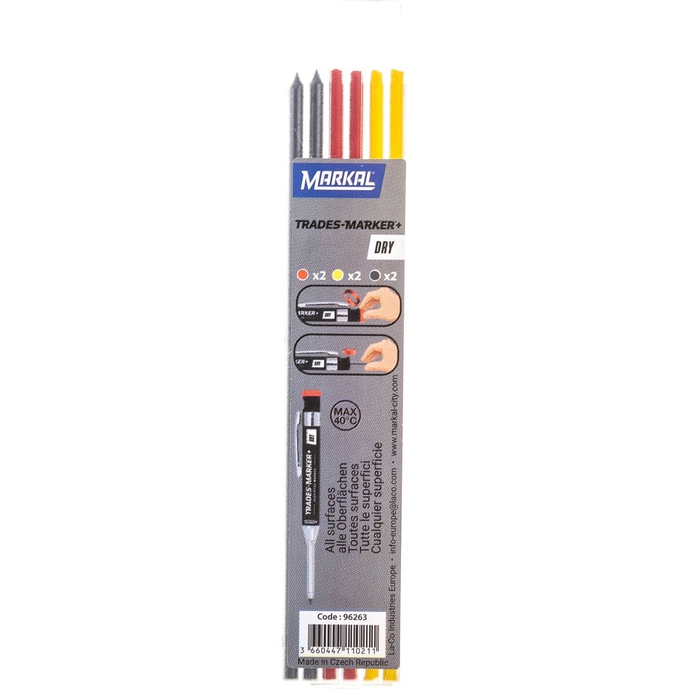 Стержни для карандаша Markal Trades Marker Dry, разноцветные, 6 шт 96263 позволяют наносить разметку при помощи специального инструмента. Имеют высокую прочность и твердость для работы со строительными и отделочными материалами.