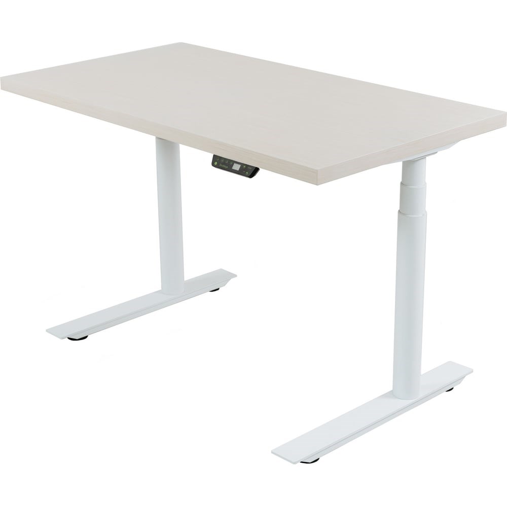 Стол с регулировкой высоты StolStoya ТИТАН Design рама белая, столешница МДФ, шпон, беленый дуб, 120x65 SE221DBD12065 совмещает в себе все преимущества флагманской рамы для чередования работы стоя и сидя. Изделие выделяет редкий дизайн с круглыми ножками и со смещением оси опор. Столешница легкая, изготовлена по каркасной технологии. Имеет отделку шпоном с покрытием итальянскими лаками. Благодаря этому стол получает дополнительную индивидуальность и красоту. Особенности модели: Устойчивая конструкция Легкая сборка Размер опоры 700*75 мм Размер боковой верхней опоры столешницы 570*46 мм Регулируемая ширина от 107 до 180 см Регулировка высоты от 63 до 128 см Управление с пульта и мобильного приложения Пульт управления с возможностью сохранения 4-х положений столешницы Защита от перегрева Система защиты от столкновения Функция изменения параметров движения Защита от детей Функция чувствительности баланса Экран отображающий высоту столешницы Электронная система защиты от зажима с возможностью настройки чувствительности Напоминание о смене положения Питание: 120V/230 вольт Скорость подъема: 30 мм/с