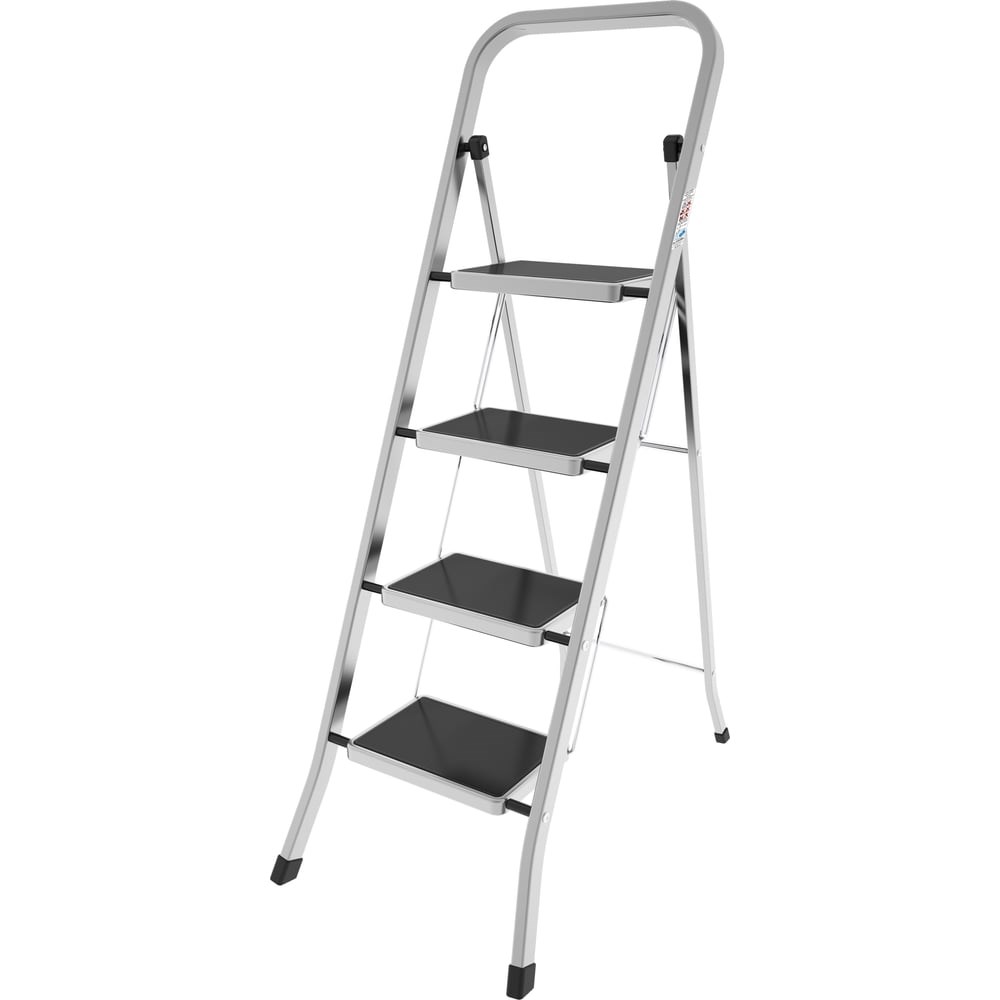 Стремянка Colombo FACTOTUM 4 al G110AT4W пригодится в любой ситуации. Каркас изготовлен из алюминия, ступени стальные, что гарантирует высокую прочность и долговечность. Широкие прорезиненные ступени не позволят скользить во время работы стоящему на них человеку.