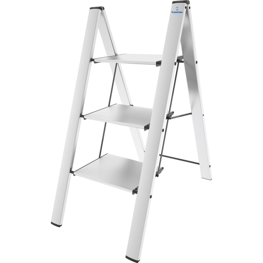 Стремянка Colombo Leonardo 3 silver G300A03W идеально впишется в интерьер офиса, дома. Отличается небольшим весом, устойчивостью и практичностью. Ступени имеют рифленую поверхность, что гарантирует безопасность при подъеме и спуске. Модель оснащена пластиковыми заглушками, которые не повреждают напольное покрытие.