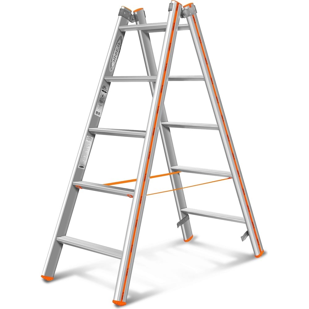 Стремянка Эйфель Комфорт-Профи 205 - это двухсекционная лестница, имеющая 4 точки опоры, отличающаяся устойчивостью даже на скользкой поверхности. Оснащена ступенями с рифленой поверхностью - для безопасного спуска/подъема. Алюминий, из которого изготовлено изделие, не подвержен коррозии и не пачкает руки.Стремянка подходит как для профессиональных работ, так и для работ в быту.Корпус выполнен из алюминиевого профиля овального сечения. Такой профиль выдерживает большие нагрузки, чем прямоугольный. Его удобно держать при переносе лестницы и комфортно держаться при подъеме-спуске.Ступени выполнены из профиля шириной 63 мм с глубокой насечкой. Они располагаются строго горизонтально при приведении лестницы в рабочее положение. Комфортная работа на стремянке с широкими ступенями особенно ощущается при длительном нахождении на высоте.Опоры выполнены из полимера, устойчивого к истиранию и температурам в диапазоне от -40 до +50 градусов С.Модель имеет двойные фиксаторы-ловушки, скрепляющие секции при хранении или транспортировке.