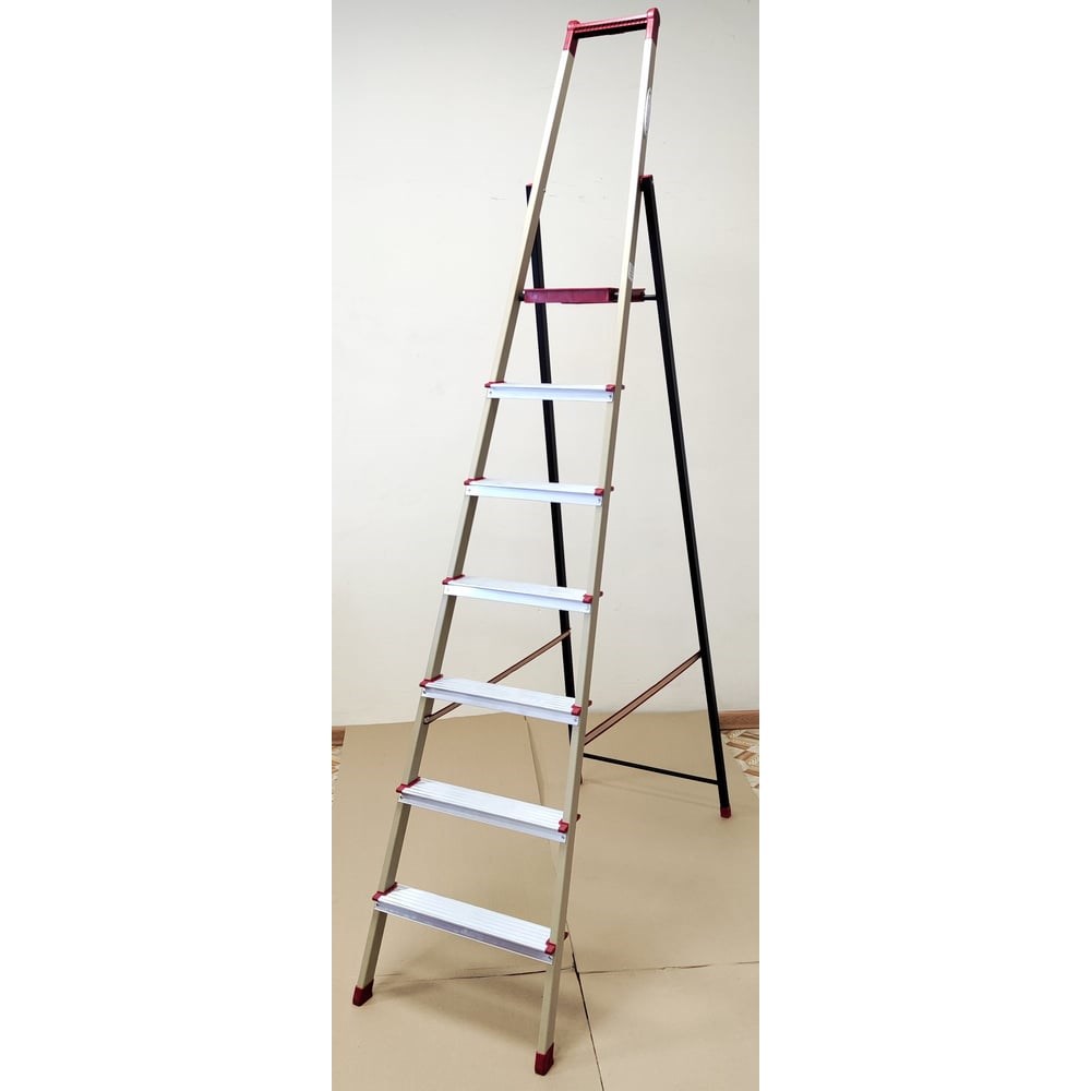 Стремянка Эйфель Титан профи 106+1 - это профессиональная односторонняя стремянка, которая сочетает в себе прочность и удобство использования. Изготовленная из стали и алюминия, она обеспечивает надежность и долговечность при максимальной рабочей нагрузке до 150 кг. Высота рабочей площадки составляет 1,63 м, что позволяет комфортно выполнять задачи на высоте до 3,63 м. Семь развальцованных ступеней обеспечивают устойчивость и безопасность при подъеме. Ширина ступеней 82 мм и ширина лестницы 550 мм способствуют комфортному использованию. Лестница оснащена лотком для принадлежностей, что упрощает работу, позволяя держать инструменты под рукой. В сложенном состоянии стремянка компактна, что облегчает ее хранение и транспортировку. Вес изделия составляет 8,93 кг, что делает его достаточно легким для перемещения.