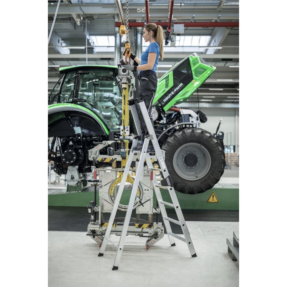 Стремянка MUNK 7 ступеней рукоятка Ergo-pad 040107Стремянка MUNK Guenzburger Steigtechnik - удобство использования, прочность и надежность!Nivello® - это надежная основание с подвижным соединением для полноценной сцепки поверхности и в 4 раза большего контакта с поверхностью, чем у традиционных лестничных башмаков.Рукоятка Ergo-pad® - с ее помощью удобно переносить и хранить стремянку.Особенности:Немецкое качество сборки и материалов;Устойчивые стойки из прямоугольного профиля;Ступеньки глубиной 80 мм и большая площадка;Развальцованное с 4х сторон соединение ступени со стойкой;Коническая направляющая для надежной стойки;Лестничные подошвы nivello® с запатентованной технологией наклона по 2 осям;Рукоятка для переноса и хранения ergo-pad® с зажимным механизмом;Соединение стоек закрыто крышками;Практичный лоток со встроенным крючком и держателем для инструментов;Стремянки семь и более ступеней комплектуются фиксатором распорки с двумя ремнями из высокопрочного полиэстера;Расстояние между ступеньками: 235 мм;Наклон лестницы: 70°;Транспортные габариты: 2430 x 575 x 164 мм;Максимальная нагрузка: 150 кг.