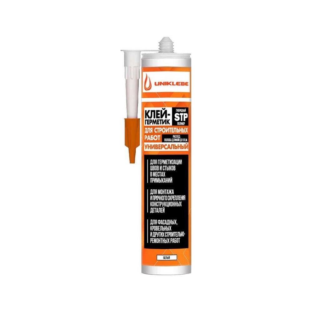 UNIKLEBE - универсальный клей-герметик для строительных работ на основе силан-модифицированного полимера. Предназначен для скрепления и герметизации швов и прочих конструкций при фасадных, кровельных и других строительно-ремонтных работах, возникающих при эксплуатации объектов. Вибростойкий, атмосферостойкий, может применяться как внутри, так и снаружи помещений. Простой в применении, сохраняя постоянно эластичный и вибростойкий клеевой шов, клей-герметик подходит для работ с практически любыми видами материалов и к любым видам поверхностей, включая пористые основания: бетон, камень и другие минеральные основания, гипсокартон, древесина и материалы на её основе, металл, керамика, стекло, стекломагнезит, полиуретан, полистирол, ПВХ и т.д., за исключением полипропилена и полиэтилена. Отверждение клея-герметика происходит при взаимодействии с влагой из воздуха, после отверждения не имеет усадки. Удовлетворяет требованиям ТУ 5770-001-09285659-2015.