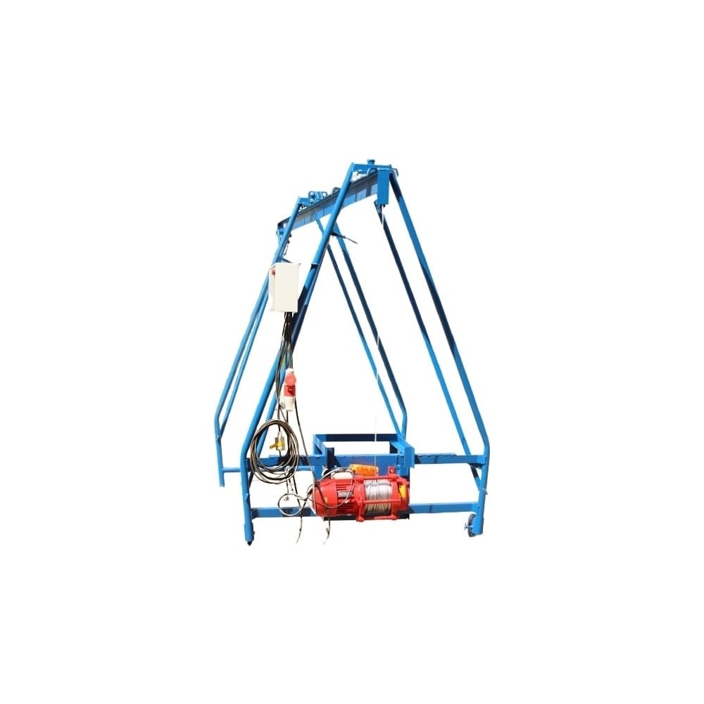 Строительный подъемник Комплан типа Умелец модель ПС-320 без груза 4627201549709 используют на складах и строительных объектах при выполнении ремонтных и погрузочных работ. Запуск лебёдки происходит с помощью автоматического переключателя на пульте, а управление осуществляется с кнопочного тельферного поста. Модель оборудована колесами с фиксаторами на задних стойках и регулировочными винтовыми опорами на передних стойках, что значительно упрощает транспортировку и установку агрегата на рабочей площадке.