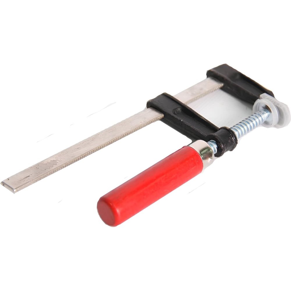 F-образная струбцина представляет собой сочетание рамы, подвижных губок и регулировочного винта с рукояткой. Модель выполнена из прочного и качественного металла, имеет высокий рабочий ресурс. Используется в области столярно-слесарных работ для сжимания между собой металлических или деревянных заготовок.